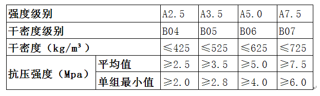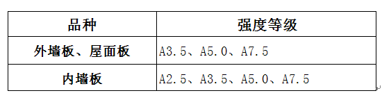 灰加气板材用做外墙板及屋面板时最低强度要求为3.5Mp,用做内墙板的最低强度要求为 2.5Mpa。